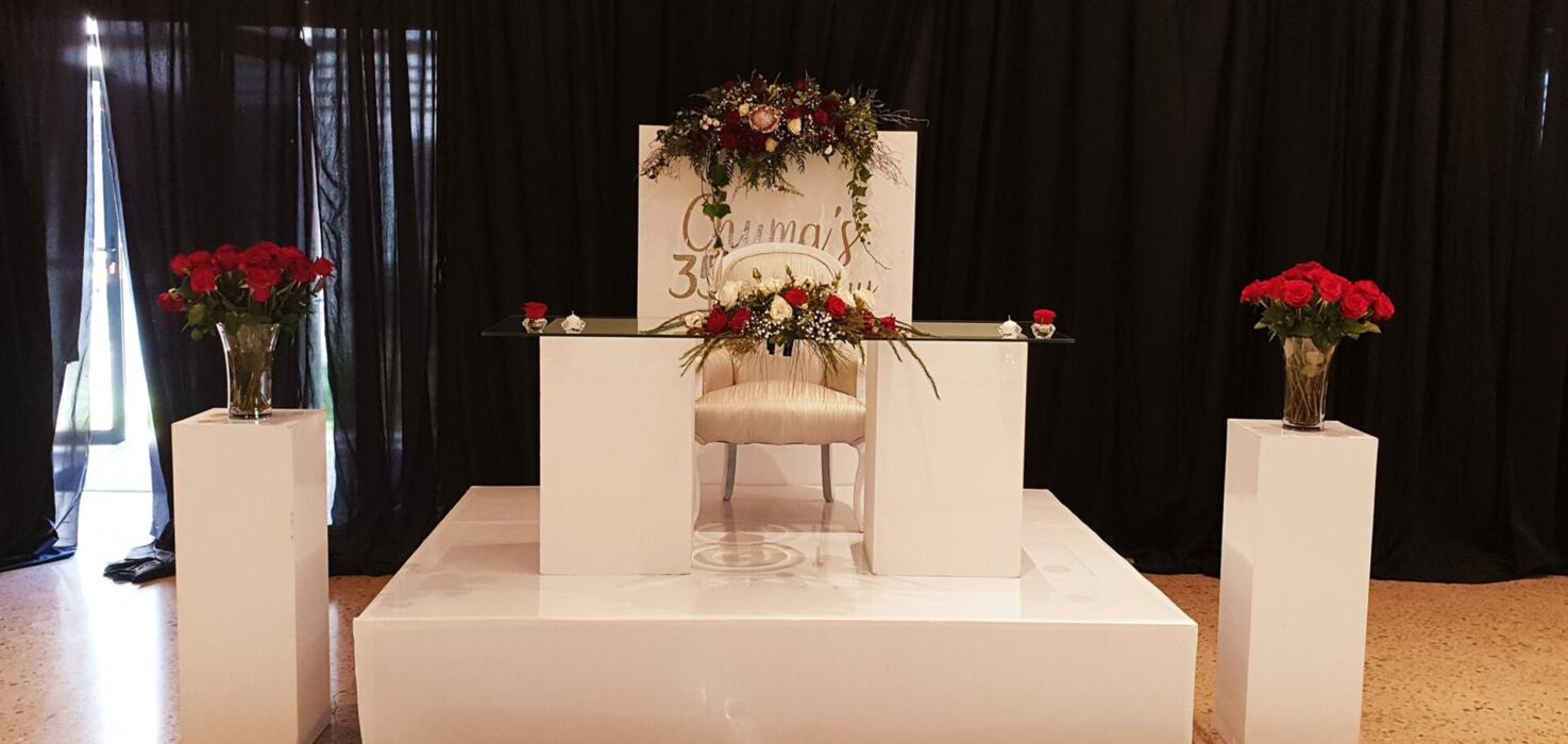 With a Dance Floor:50 People around 10-Seater Round Tables with a Buffet set up in the Venue