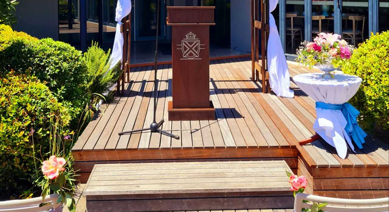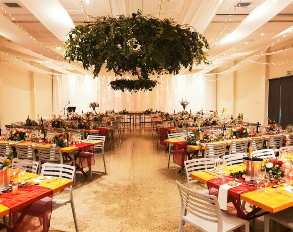 Open-air weddings. Guests enjoy canapés and a cocktail in our open-air courtyard whilst waiting for the bridal party. An elevated stage area sets the mood with live entertainment.